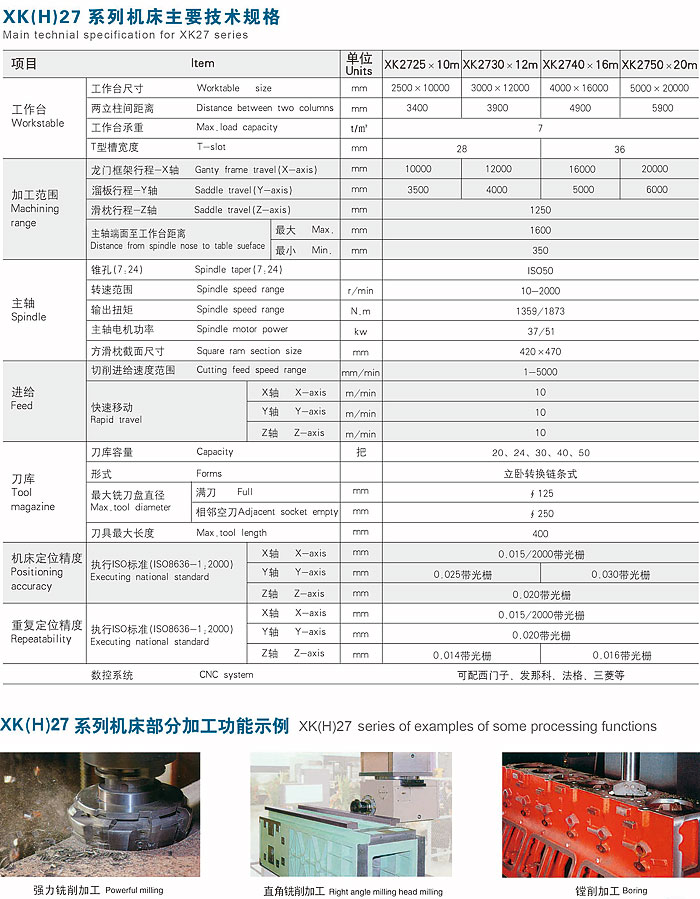 XK (H) 27 series of CNC fixed beam moving column gantry milling machine, machining center
