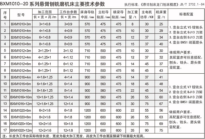 BXM1010-20 series heavy - duty cantilever planing milling machine Introduction to machine tools Yansheng Machine Technology Center cantilever projectdepartment brings together many well-known domestic manufacturers engaged in cantileverplaner design, processing, assembly, technology, quality inspection of the senior workers,experts, bringing together advanced technology at home and abroad, the use of advancedservo control and transmission technology, The series of machine table with a bearingcapacity to meet the three functions of the milling machine in the 25mm a 70m / min rangeof smooth operation, to achieve the plane milling machine plane features. The overall structure of the machine The BXMl010-20 series cantilever milling machineis fixed on the foundation, and the table is reciprocated along the bed guide. The column isconnected to the right side of the bed. The beam and the cantilever are connected to moveup and down along the column guide. Cantilever and Column for the electronic control ofmechanical locking. Beams, columns may need to configure the planing head, boring andmilling head, grinding head and other functional components (user-defined) Basic parts of the process of protection Machine basic parts from the bed, tablecolumn, beams, cantilever, slide plate and other components. Machine tool large HT250 highquality alloy wear-resistant cast iron, the vibration aging of a furnace when the aging of avibration aging a roughing a vibration aging half of the finishing a hot furnace aging avibration aging of a finishing to eliminate the workpiece stress to ensure that the machineLong-term operation accuracy.